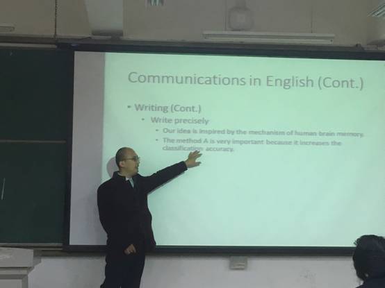 随后,任鹏教授根据自己多年的审稿经验对当前中国学者在科研论文写作过程中经常出现的一些误区做了详细地介绍:主要包括使用中国人的思维去写外语文章;对重点内容不做解释从而造成理解困难;文章中习惯用动词进而造成表述不确切。并且,针对同学们提出的外语论文无话可写的问题,任鹏教授做出认真回答,对句子扩展的方法进行了详尽地讲解,同时进一步阐述了如何通过使用名词、数字来使科研论文变得更有说服力,如何通过培养自己的逻辑习惯来使文章更具有逻辑性,以及如何鉴别科研的“真与假”等。