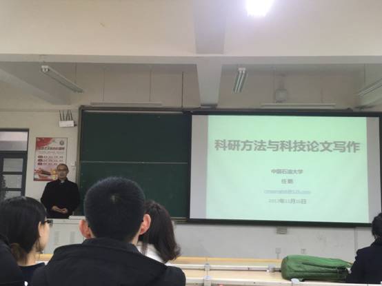 为弘扬科学道德精神与学风建设宣讲教育,11月16日下午,中国石油大学信息与控制工程学院任鹏教授应邀在主教学楼B202为开元官网师生作了题为《科研方法与科研论文写作》的报告,此次讲座由通信与电子工程学院副院长聂廷远教授主持,开元官网研究生与本科生均积极参与讲座,并在报告结束后虚心向任教授求教。