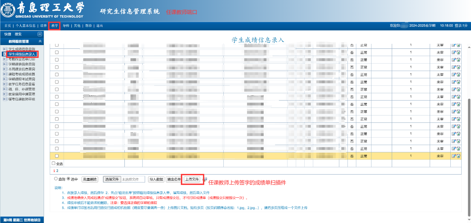 2.正常录入成绩之后,上传本人签字确认的成绩单扫描件,确保扫描件清晰完整,文件格式符合系统要求。