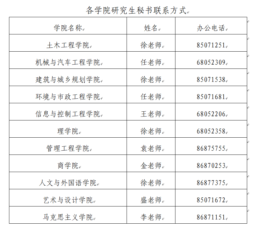 2.若选课出现问题,请同学们到本学院教学办公室联系研究生秘书帮助解决(联系方式见下表);各学院如有问题可与研究生培养办公室联系(联系电话:85071296)。