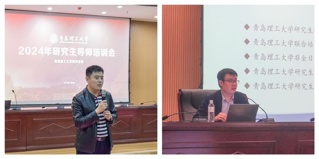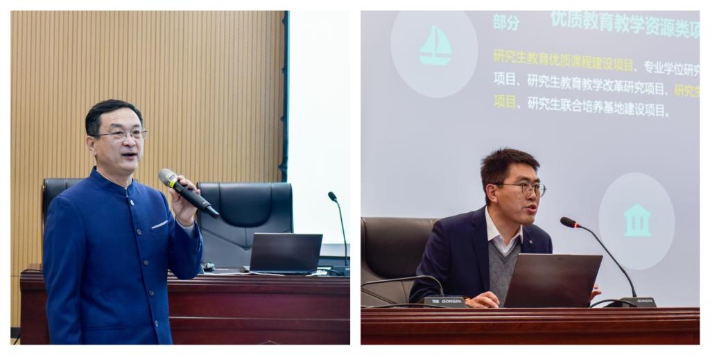 研究生院副院长贾玉跃和刘杰分别从研究生导师管理及学位授予和研究生培养管理等方面对研究生教育相关文件和变化进行了详细解读。