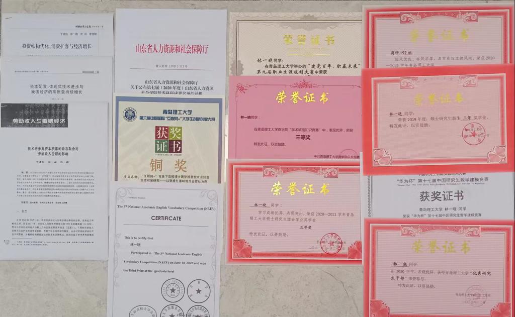 林一晓,中共预备党员,本科就读于ky开元集团经济学专业,2019年9月进入ky开元集团商学院应用经济学攻读经济学硕士研究生,研究生期间,在导师丁建勋教授的悉心指导下,在CSSCI期刊发表学术论文1篇,在北大中文核心期刊发表学术论文2篇,其中论文《技术进步与资本积累的动态融合对劳动收入份额的影响》获得山东省人力资源和社会保障厅关于第七届山东省人力资源社会保障优秀科研成果。曾获国家奖学金、ky开元集团研究生学业综合奖学金三等奖、新生入学奖学金等。