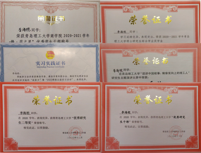 勤学善思,笃行致远。研究生期间,得益于毛淑珍副教授的潜心教育和培养,个人专业水平和学术素养得到了极大提升,共在中外文学术期刊发表论文6篇,参编教材专著1部,参与省社科规划项目1项;参加山东半岛MPAcc案例大赛获校赛二等奖、山东省"尖峰时刻”商业模拟挑战赛校赛-等奖等。