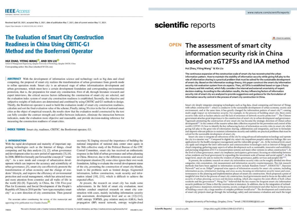 [1] Zhao H, Wang Y, Liu X. The assessment of smart city information security risk in China based on zGT2FSs and IAA method[J]. Scientific reports, 2022, 12(1): 1-14.