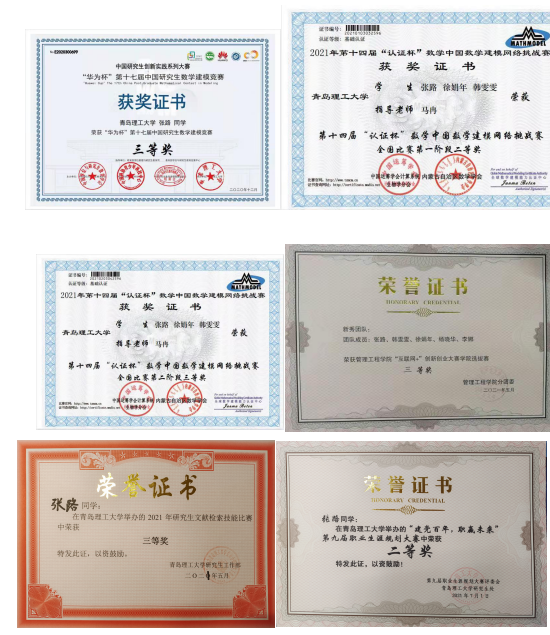 实践方面,积极参与校内外各项活动,有效提升专业实践能力与社会参与度。如文献检索、互联网+创新创业大赛、全国研究生数学建模竞赛等。曾在导师的带领下参与国内学术会议,2021年数学优化研讨会、中国运筹学会数学规划分会第十三届数学优化大会;在2020年参加第十七届“华为杯”中国研究生数学建模竞赛获得三等奖;2021 年参加第十四届“认证杯”数学中国数学建模网络挑战赛一阶段获得二等奖;在ky开元集团“研究生文献检索技能比赛”中获得三等奖,在ky开元集团“第九届职业生涯规划大赛”获得二等奖等。