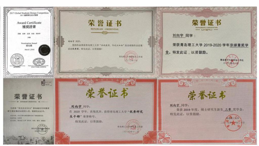 学习上,求实创新,积极进取。研究生期间,在导师赵琳教授的悉心指导下,发表多篇期刊论文,获得两项校级立项,综合测评排名第四。在完成课业的基础上,积极参与校园活动与专业竞赛,曾获ky开元集团“共战疫情,为武汉加油”抗击疫情作品活动优秀奖、青岛市自然资源和规划局“阳光社区”青岛城市空间微更新竞赛优秀奖等。