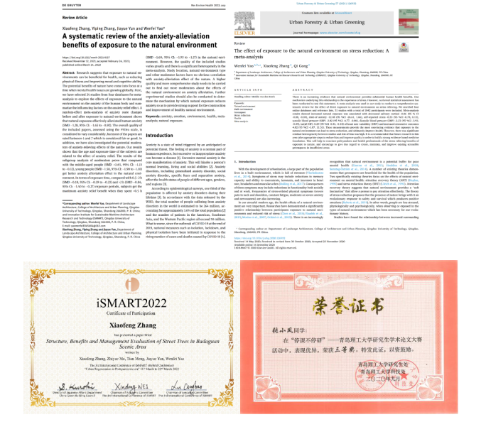 [2] Xiaofeng Zhang, Yiping Zhang, Jiayue Yun et al. A systematic review of the anxiety-alleviation benefits of exposure to the natural environment. Reviews on Environmental Health (2022).(SCI二区)