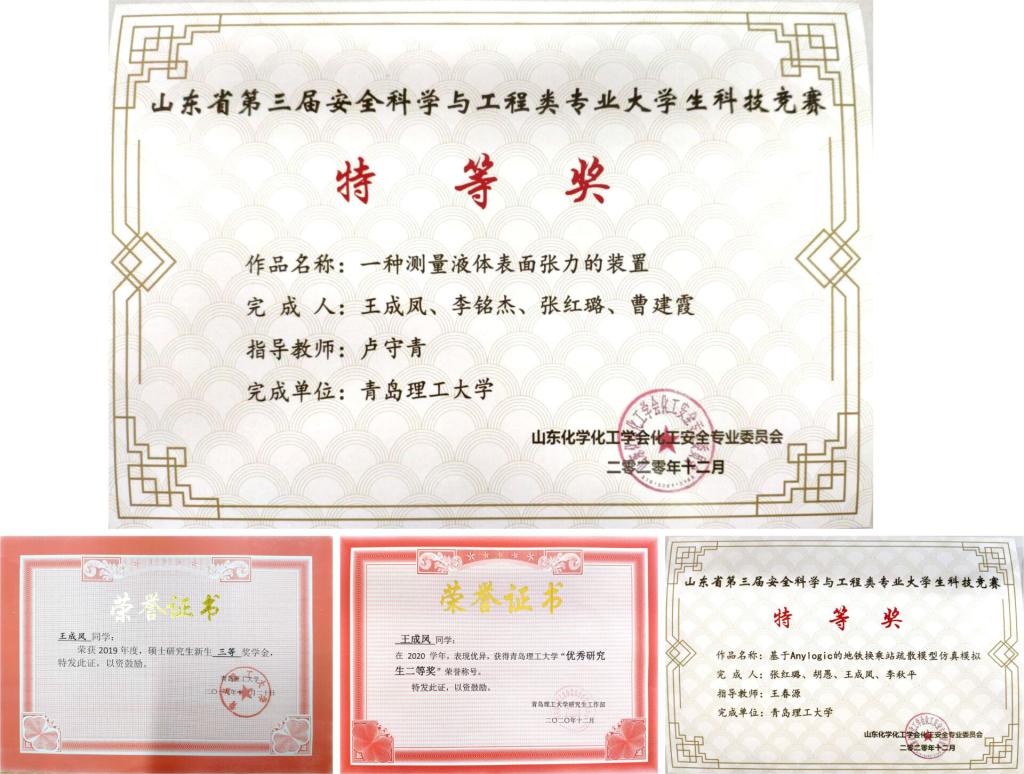 王成凤,中共预备党员,2019年9月考入ky开元集团安全科学与工程专业攻读硕士研究生。研究生期间,在导师卢守青副教授的指导下,发表SCI二区及以上论文4篇、北大中文核心1篇,申请发明专利3项,实用新型专利1项,获得山东省安全科学与工程类专业大学生科技竞赛特等奖2项,获得优秀研究生奖学金、国家奖学金等。