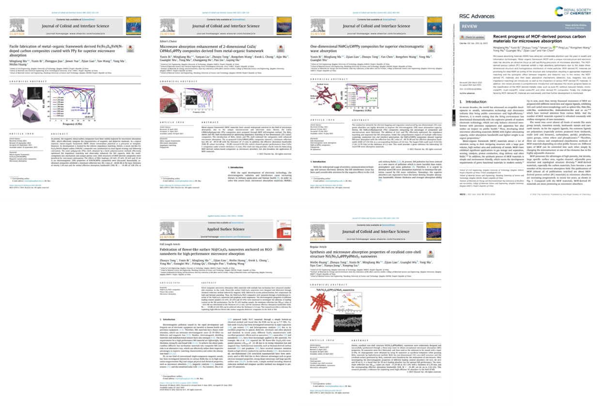 [2] Y.X. Bi, M.L. Ma, et al., One-dimensional Ni@Co/C@PPy composites for superior electromagnetic wave absorption, J. Colloid Interf. Sci. 605 (2022) 483-492.