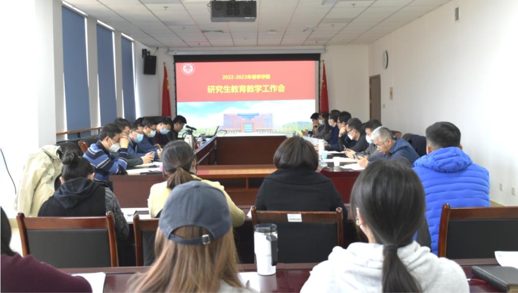 副院长贾玉跃、宋传旺、刘长青就分管工作,传达上级有关要求并补充汇报相关注意事项。各学院就研究生工作进行了深入探讨交流。
