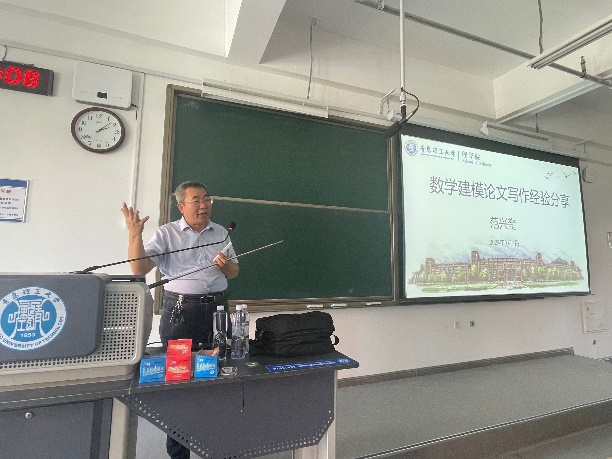 范兴奎教授以历年真题为切入点,从数学、数学建模、数学建模竞赛逐一展开,详尽地介绍了数学建模的具体问题,让大家认识到了数学知识应用的广泛性、工具性和重要性。同时,他强调,在比赛过程中每位同学都要树立竞赛诚信意识,坚守学术道德,发挥团队精神,注重分工协作和组内交流。范兴奎教授语言幽默,现场气氛活跃。