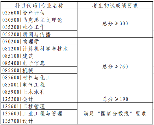 2.初试成绩达到教育部统一规定的A类地区的全国初试成绩基本要求(单科、总分)。
